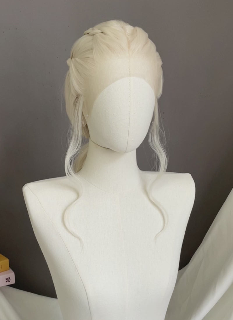 House of the Dragon Queen Rhaenyra Targaryen Platinum Blonde Braided Lace Front Synthetic Wig LF2168